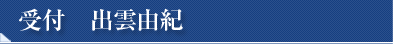 | 役職/氏名 | 総合受付 出雲由紀(いずも ゆき) |